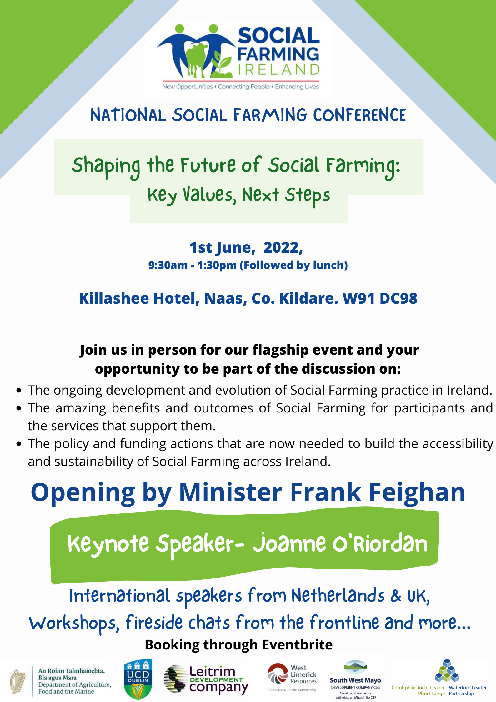 Social Farming Ireland Conference 1st June 2022- Shaping the Future of Social Farming: Key Values, Next Steps May 16, 2022CaoimheMck