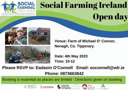 Social Farming Ireland would love you to join us on the morning of Thursday May 4th , for an Open day on the farm of Michael O Connor, Nenagh, County Tipperary.